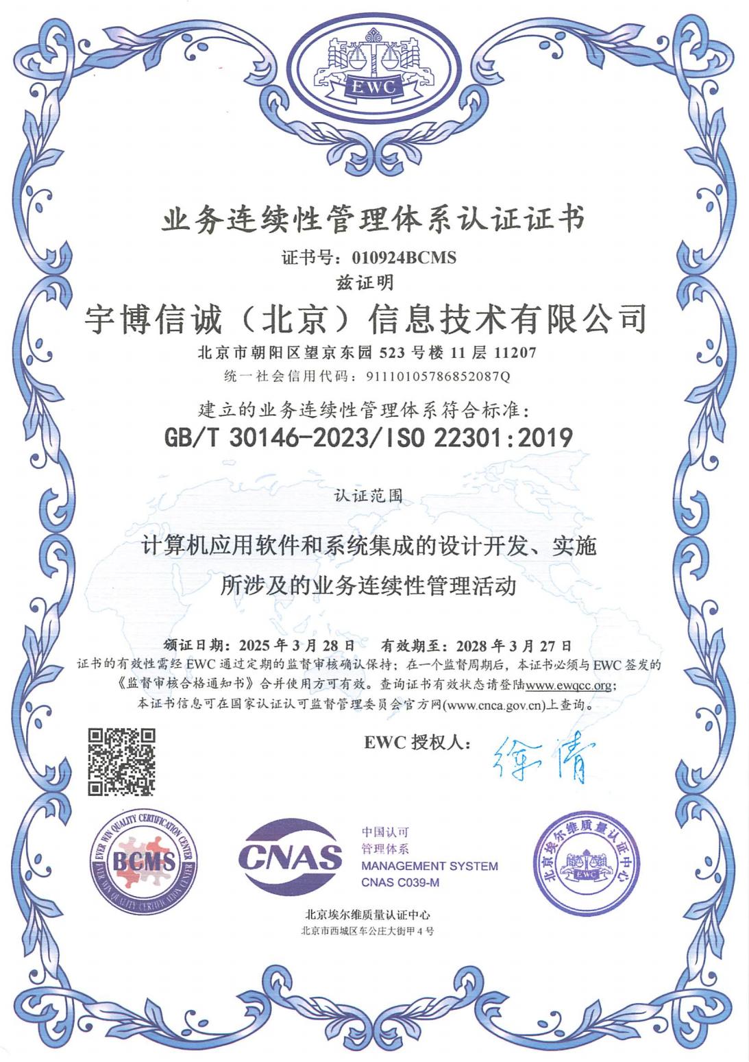 顺利通过ISO22301的业务连续性管理体系认证